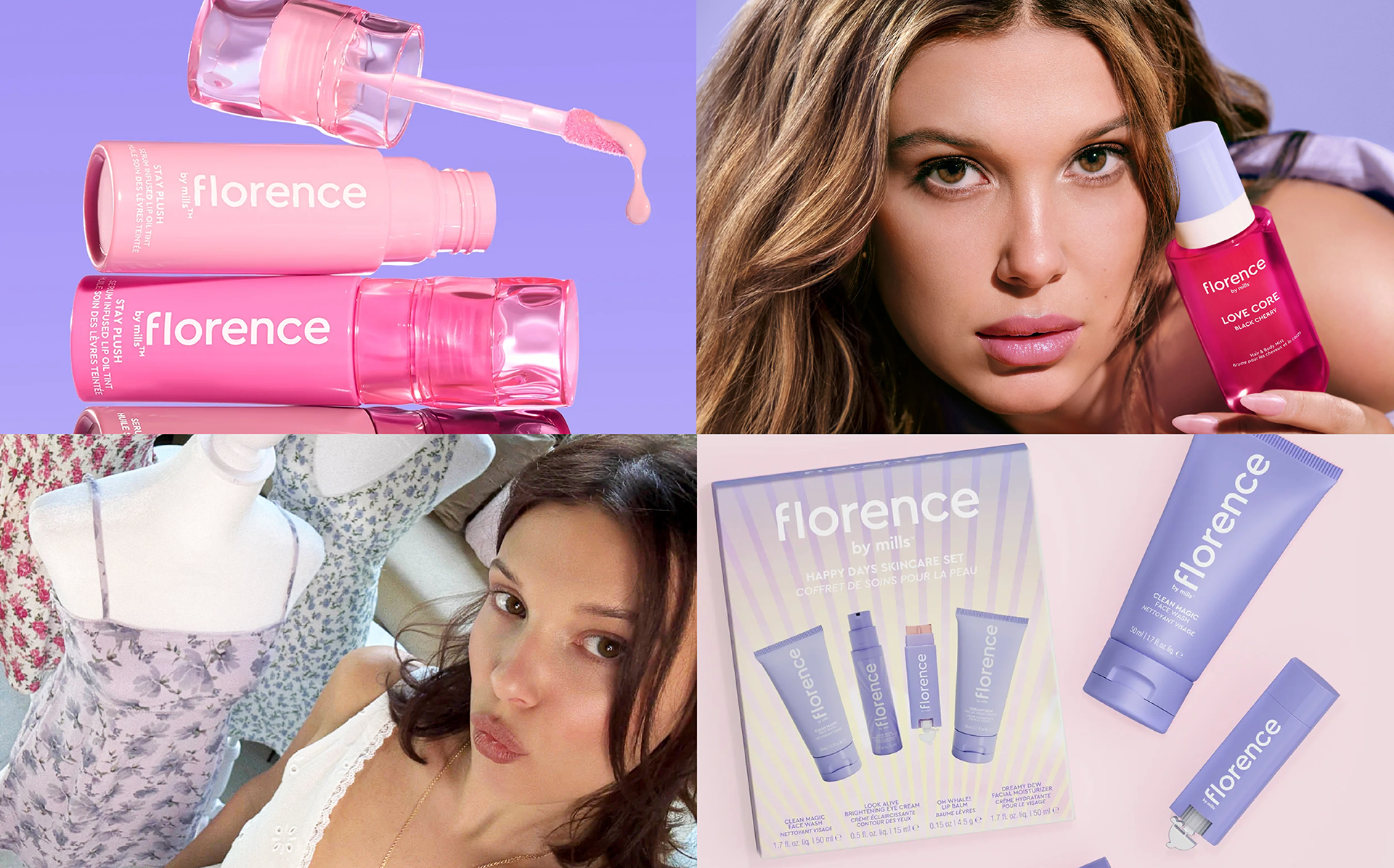 Florence by Mills is a Gen Z focused beauty and skincare brand founded by Millie Bobby Brown. Launched in 2019, the brand is positioned around accessibility, self expression and everyday routines. Its identity system is soft, playful and instantly recognisable, built through pastel colour palettes, handwritten typography and a tone that feels personal and direct. The brand is distributed globally through major retail partners and continues to expand across product categories.